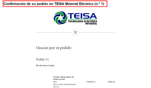 4. Verifica que el número de pedido mostrado en el primer apartado sea correcto.