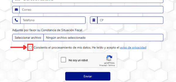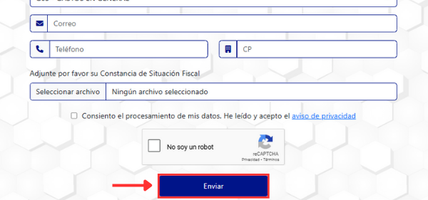 16. Haz clic en "Enviar". Tu solicitud será procesada y recibirás la factura conforme a lo establecido en el punto 6 de nuestra Política de Ventas, Garantías y Devoluciones.