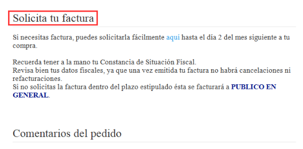 Sigue los pasos que se indican a continuación para solicitar la factura correspondiente a tu pedido:
