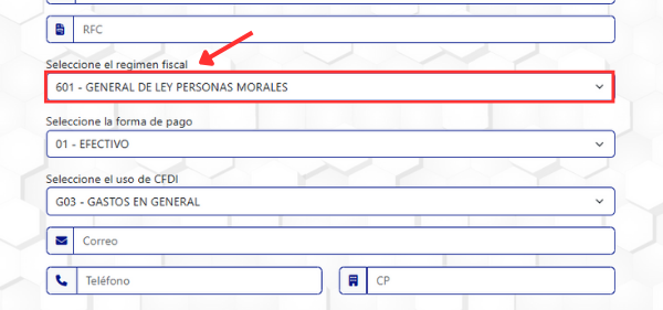7. Selecciona el "Régimen Fiscal".