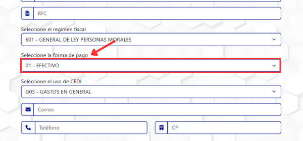 8. Selecciona la "Forma de Pago" utilizada en tu compra.